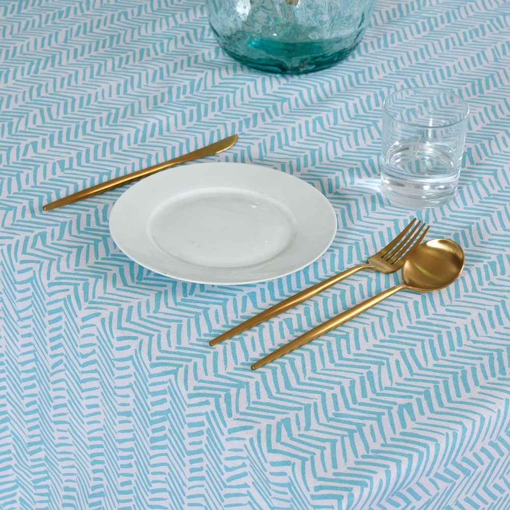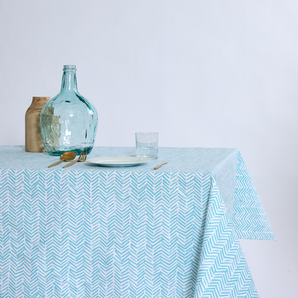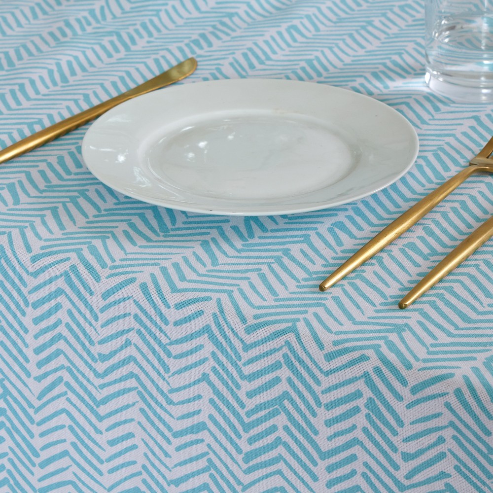 Toalha de mesa resistente a manchas em junco ecológico turquesa
