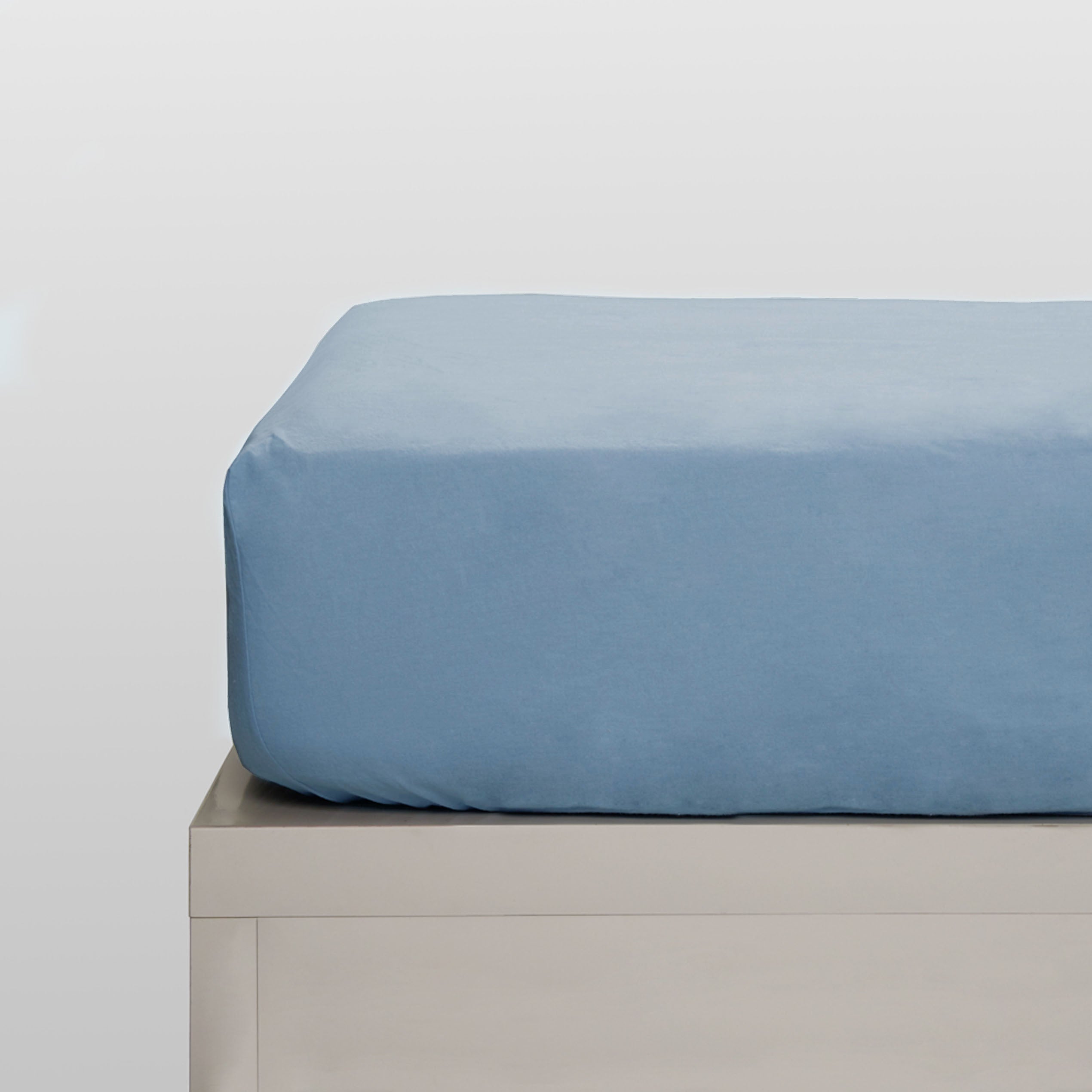 Lençol de baixo perchado (suavização - toque pêssego) a duas faces, com quatro pontos de ajuste elásticos, adaptável. Peso de 160gr/m2.